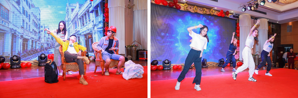 頒獎盛典過后,迎新年會節目匯演精彩紛呈,現場呼聲四起,笑聲不斷,掌聲雷動。最后震撼全場的海南民族舞蹈《竹竿舞》獲得了第一名,詼諧搞笑的《小人舞》、閃亮別致的《走秀》獲得了二等獎,啞劇《你有我也有》、民謠《九寨故鄉》、舞蹈《Good Time》獲得了三等獎。