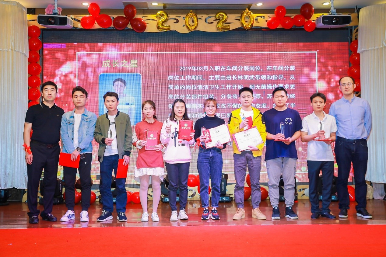 優秀的員工值得被表彰和嘉獎,致辭結束,便是隆重的頒獎典禮。這次的表彰大會不僅設立了優秀員工獎,更設立了成長之星獎、勤勞奉獻獎、崗位能手獎、金點子獎、伯樂獎及總經理提名獎。公司感恩每一位有著突出貢獻的員工,感謝他們的付出與努力,他們每一個人都是同事們的榜樣。
