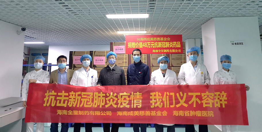 在全省上下疫情防控關鍵時期,海南全星制藥有限公司始終不忘履行社會責任,繼2月5日向??谑屑t十字會捐贈107萬元的抗疫藥品后,全星再行動,2月7日,向海南成美慈善基金會捐贈價值48萬元的抗疫藥品,用于支持海南省腫瘤??漆t(yī)療聯(lián)合體下轄110多家醫(yī)療機構開展一線疫情防控工作,助力我省早日打贏疫情防控攻堅戰(zhàn)。